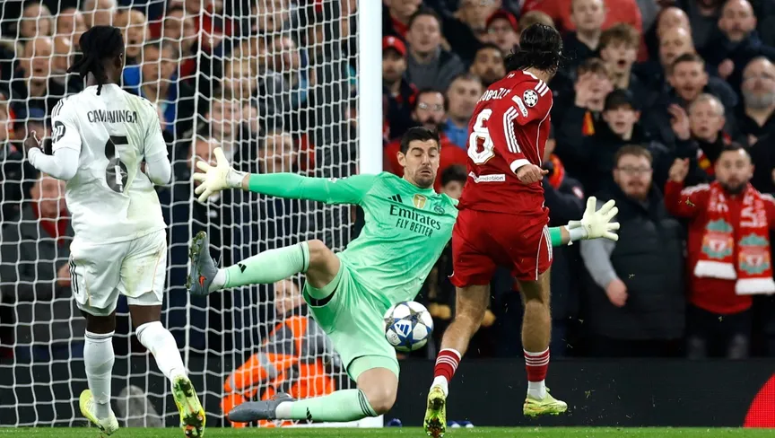The defining moment of the first 60 minutes of the Champions League match between Real Madrid and Liverpool was the legendary performance of goalkeeper Thibaut Courtois against a barrage of attacks from the Anfield side.